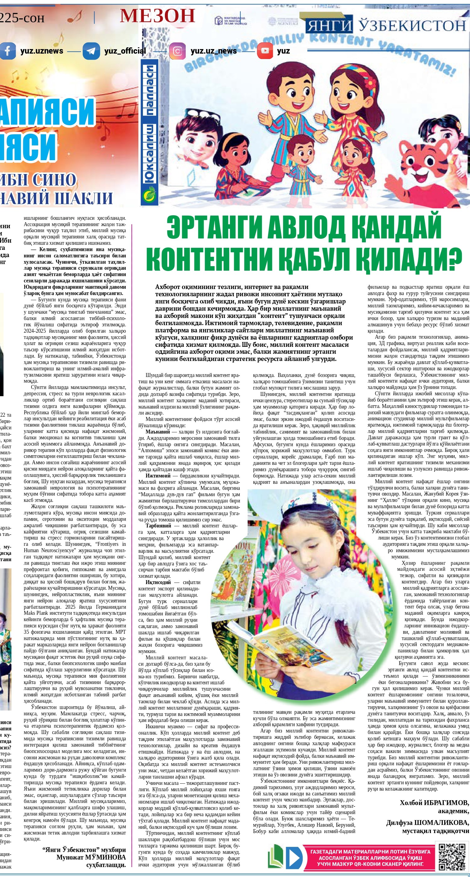 ЭРТАНГИ АВЛОД ҚАНДАЙ КОНТЕНТНИ ҚАБУЛ ҚИЛАДИ? Ахборот оқимининг тезлиги, интернет ва рақамли технологияларнинг жадал ривожи инсоният ҳаётини мутлақо янги босқичга олиб... 3 hafta avval 16
