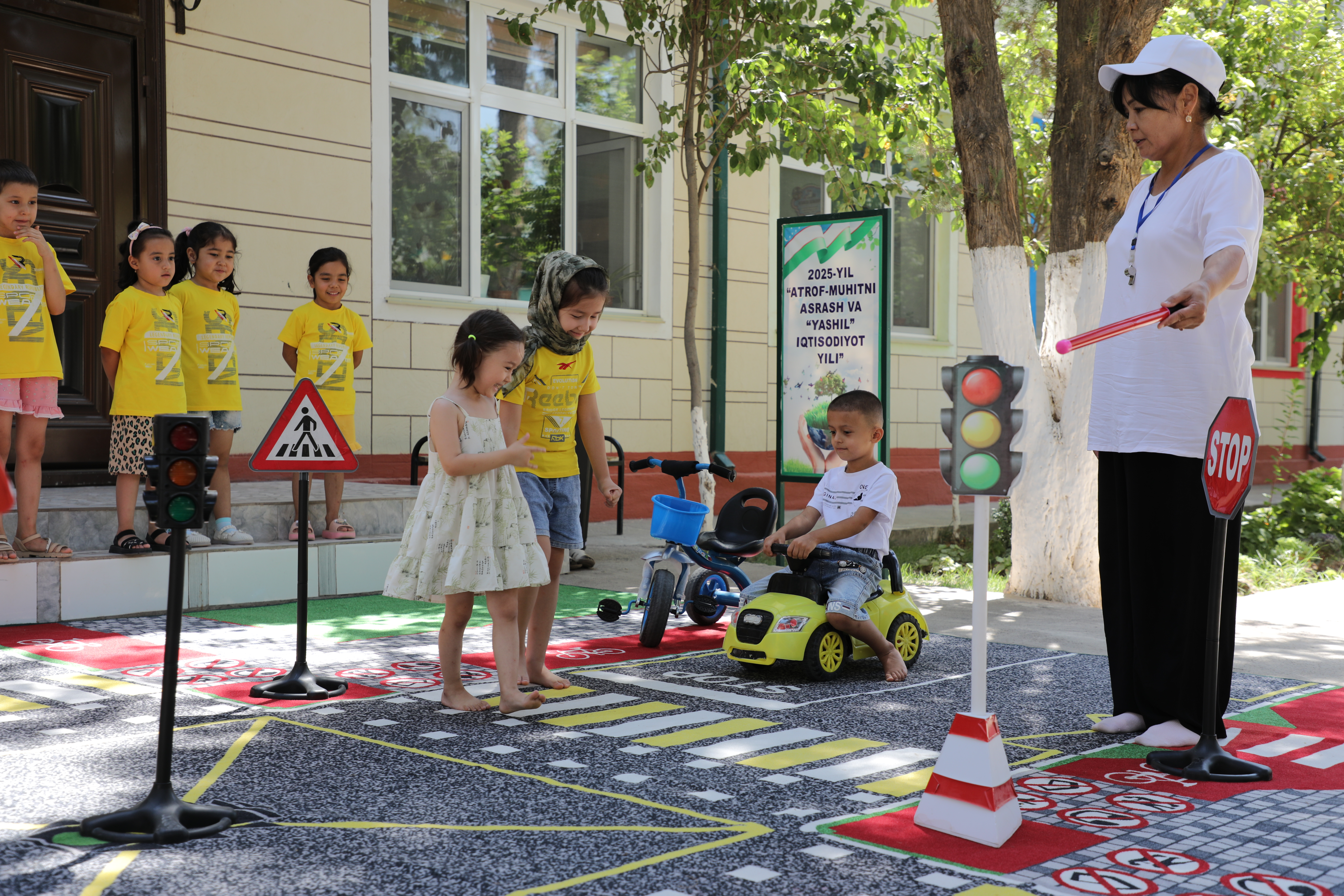 – Assalomu alaykum, bolajonlar! Biz sizlarga bugun katta ko‘chalarda, mashinalar va boshqa transport ko‘p harakatlanadigan joylarda xavfsizlik qoidalarini o‘rgatamiz. Qani, boshladikmi?